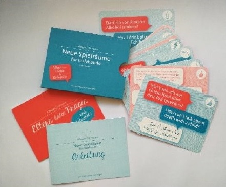 Das dreisprachiges Elternbildungsmaterial in Form eines Kartensets und Methodenanleitungen ist kein Elternratgeber. Vielmehr macht es deutlich, dass es bei Erziehungsfragen nicht DIE Antwort gibt, sondern dass verschiedene Wege und Ansätze zum Ziel führen. Schon das Lesen der Elternfragen regt zum Auseinandersetzen mit eigenen Werten und Haltungen an.